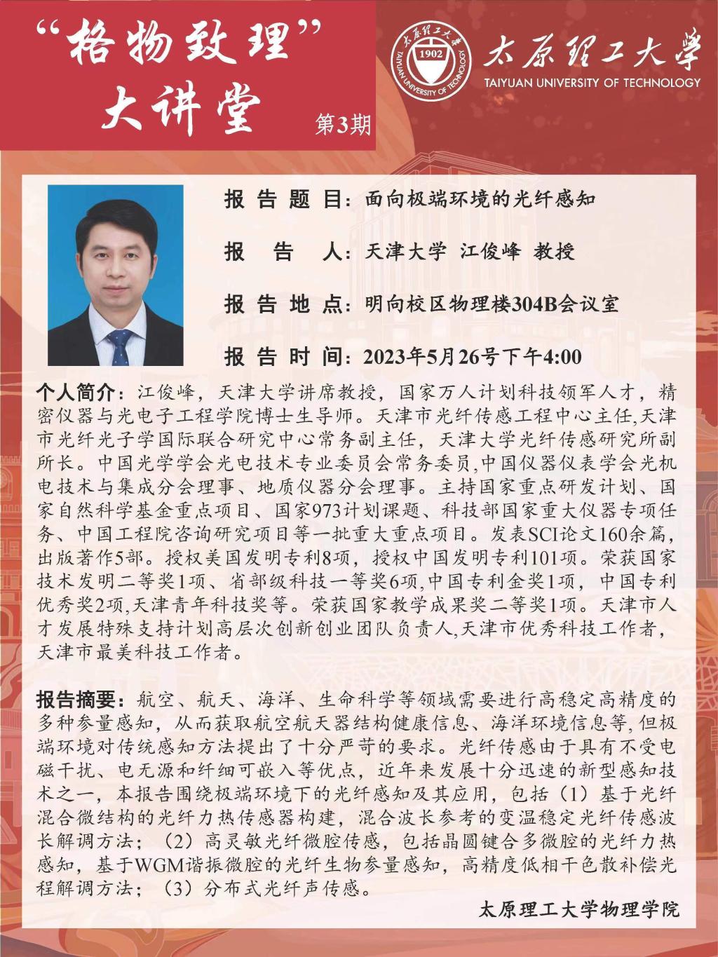 “格物致理”大讲堂 第3讲之面向极端环境的光纤感知