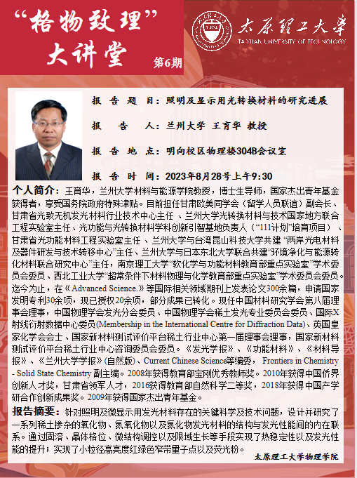 “格物致理”大讲堂 第6期之照明及显示用光转换材料的研究进展